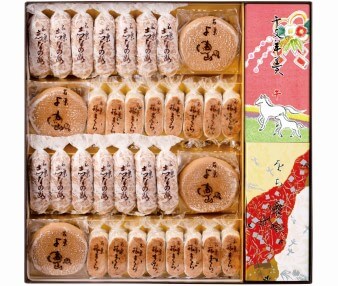 冬ギフト『東風(こち)の便り』は、来年の干支・午が描かれた『干支羊羹』と一番人気の『よも山』『旅まくら』『志なの路』との詰合。贈り物としての華やかさと満足感をひと箱にしてご用意いたしました。