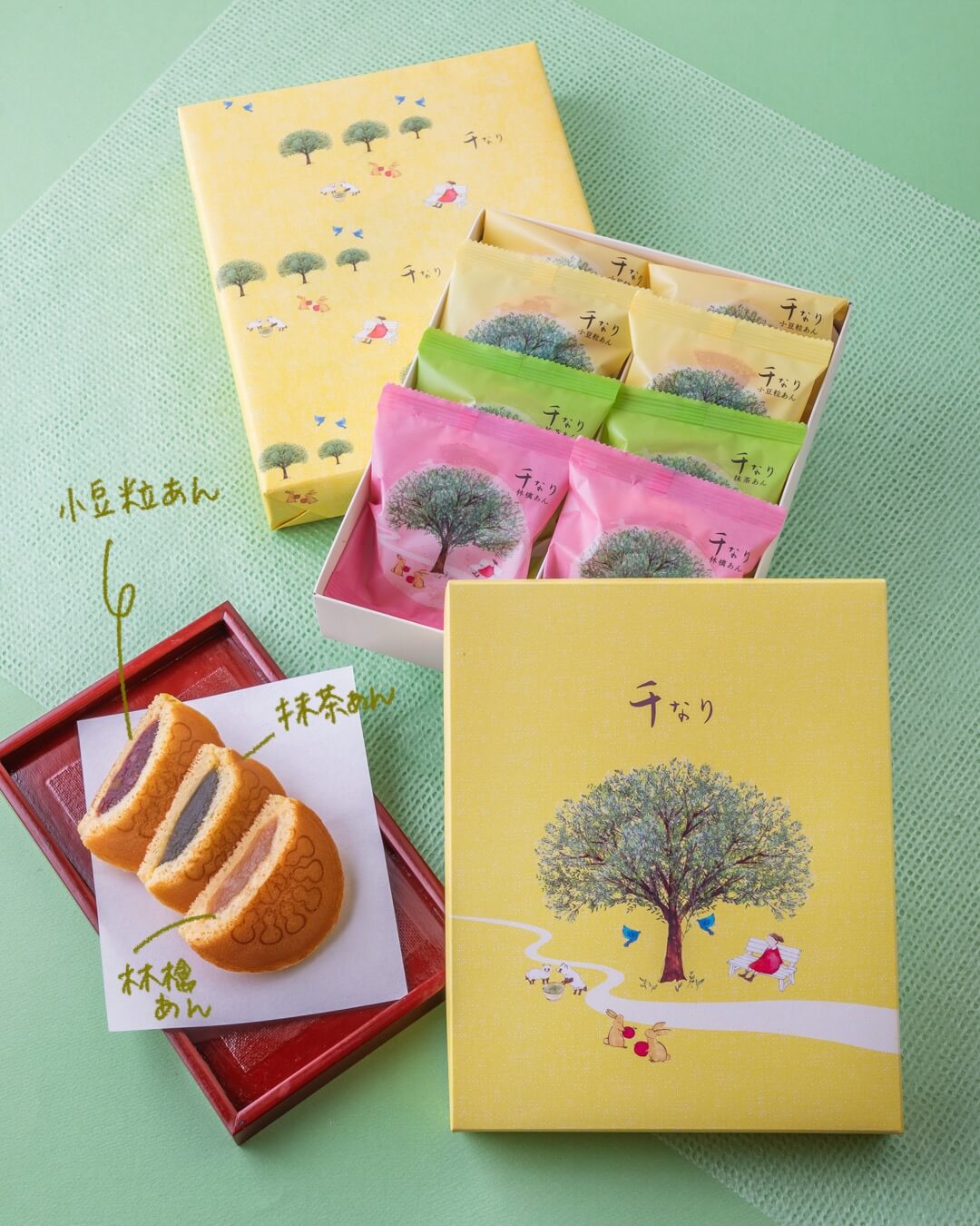 ふんわり生地に、やさしい甘さの餡をはさんだ《千なり》は、幅広い年代の方に喜ばれる、両口屋是清の定番どら焼き。きちんと感もありながら、気取らない美味しさが魅力です。