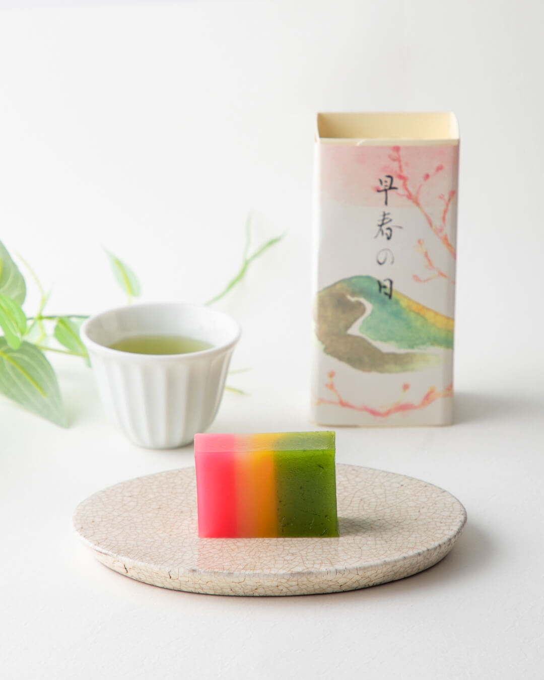 冬の寒さ厳しい時期だからこそ、一足早い「春」の喜びを感じられる贈り物がおすすめ。その名の通り、春色の山々をイメージした「春の山」と蓬入りの「早春の日」。箱から取り出した時の鮮やかな色彩は、心にもあたたかな春の便りを届けます。