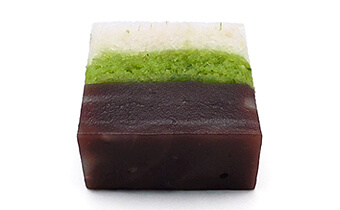 草木にわずかな変化が見てとれる。黄色に染めた白小豆こしあんを蓬入りのういろうでたたんで、春の気配を表現しました。