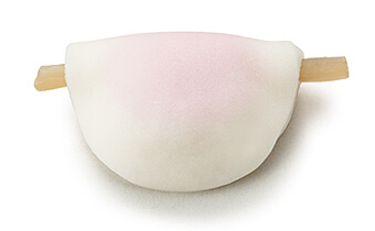 正月、宮中で長寿を祝う儀式「お歯固め」の行事に用いる鏡餅飾りを菓子化したもので、羽二重餅の薄紅が透け春の花の風情を表現したお菓子です。牛蒡は押鮎、味噌あんは雑煮に由来したものといわれています。