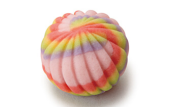 万事が丸く収まる願いと魔除けのお守りとして、煉薯蕷で小豆こしあんを包み、華てまりとしました。