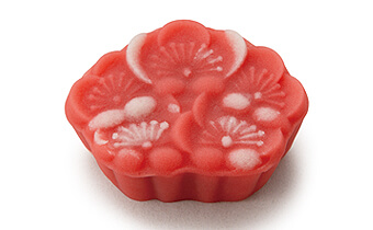 松、竹と並び古来めでたさの象徴。幾重にも重なる梅の花をこなしで表わしました。