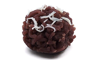 白小豆こしあんと小豆粒あんを餅皮で包んで菊を押しました。