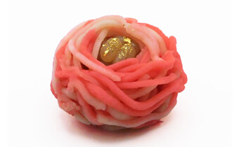 小豆こしあんに煉薯蕷を纏わせ、白小豆の蜜漬けをのせて小さく開いた牡丹の花を表現しました。