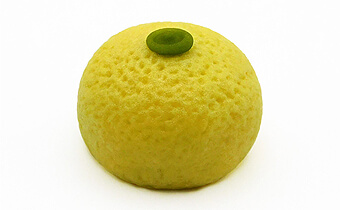 冬至には南瓜を食べ、柚子湯に入って冬の間の健康を願う習慣が今も残る。柚子風味の薯藷で小豆こしあんを包み、柚子をかたどりました。