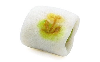 野辺や路傍に可愛らしく顔を出す蒲公英(たんぽぽ)。精一杯、春の訪れを知らせてくれます。緑に染めた白小豆こしあんを蒲公英の焼印を押したかるかんで巻いたお菓子です。