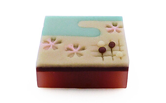 三色のういろうで白小豆こしあんを包み、草木の芽吹きと花が咲き誇り、陽光輝くのどかな春の風情を表わしたお菓子です。