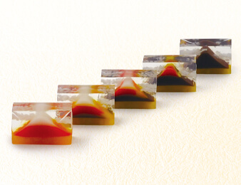 日本の象徴 富士山。その四季折々、豊かな自然の移ろいをぎゅっと一棹に閉じ込めました。切り分ける箇所により異なる富士の「天の原」の彩りです。