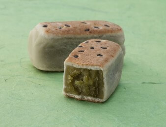 抹茶の上品な渋みとやさしい甘さが、こだわりの白餡にやわらかく溶け合います。