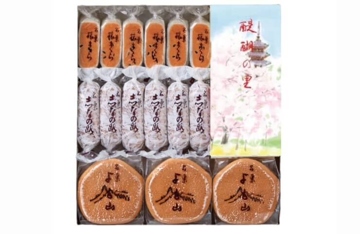 季節限定の「醍醐の里」と両口屋是清一番人気の「焼菓子(よも山・旅まくら・志なの路)」を詰合せいたしました。