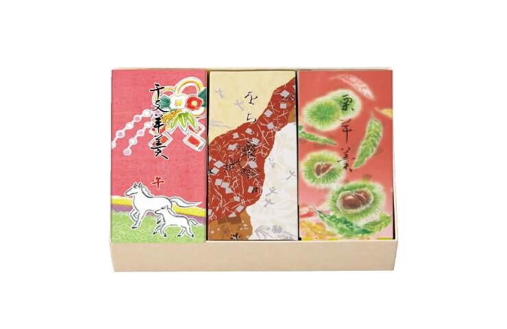 | 日保ち | 製造より ●干支羊羹 60日 ●をちこち 30日 ●栗羊羹 60日(ご購入時点での日数は、記載日数より短くなります。) |