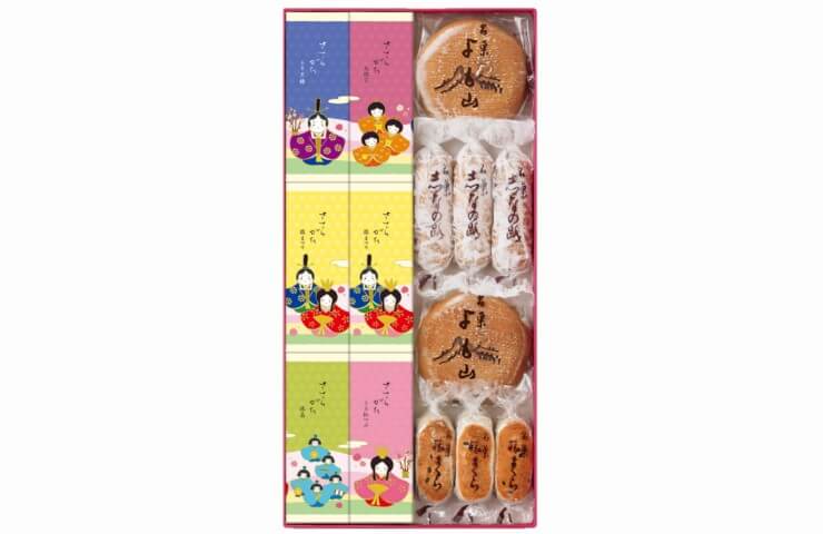 季節限定の「雛まつりささらがた」と両口屋是清一番人気の「焼菓子(よも山・旅まくら・志なの路)」を詰合せいたしました。